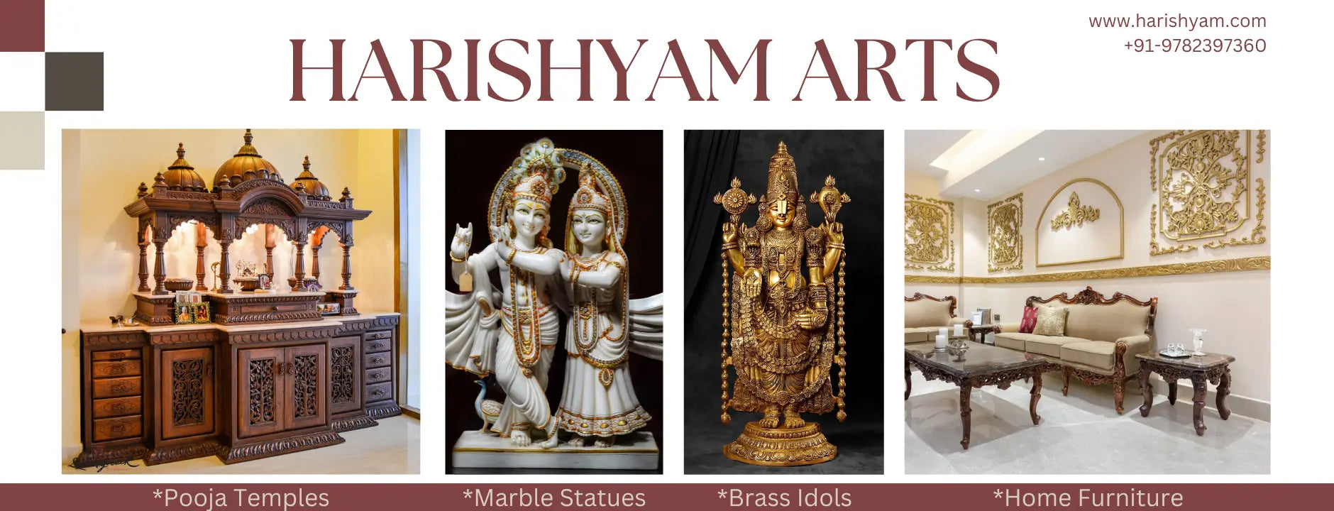 At Harishyam Arts, we cherish the idea that your home is not just a space but a reflection of your unique personality and style. Understanding this, we are committed to providing an extensive selection of home decor items that cater to every taste and preference. Whether you are looking for traditional Pooja Mandirs that resonate with the spiritual vibes of your household or seeking contemporary furniture pieces to give your space a modern twist, Harishyam Arts is your go-to source.