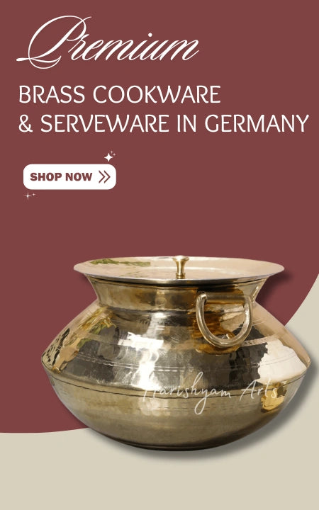 Harishyam Arts proudly presents its premium range of traditional Indian kitchenware to customers in Germany, combining functionality with heritage-rich design. Explore our brass cookware and kitchenware collection, ideal for those who value durability, aesthetic appeal, and the natural antibacterial properties of brass. Discover the purity and wellness benefits of Pure Kansa utensils, perfect for daily meals or festive occasions. For those who appreciate vintage charm, our antique copper cookware in Germany offers a unique blend of artistry and utility. Every piece is handcrafted with care, delivering Indian craftsmanship right to your German home.
