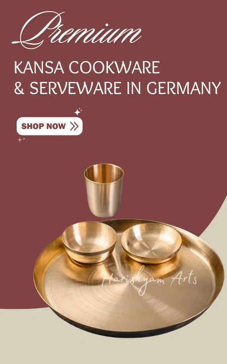 Bring Ayurvedic wellness to your table with Kansa serveware in Germany. Made from bronze (a blend of copper and tin), Kansa dinner plates and bowls are prized for their health benefits and rustic appeal. Whether you're setting up a mindful dining space or looking for handcrafted Kansa thalis, this collection blends heritage with holistic living for homes in Germany.