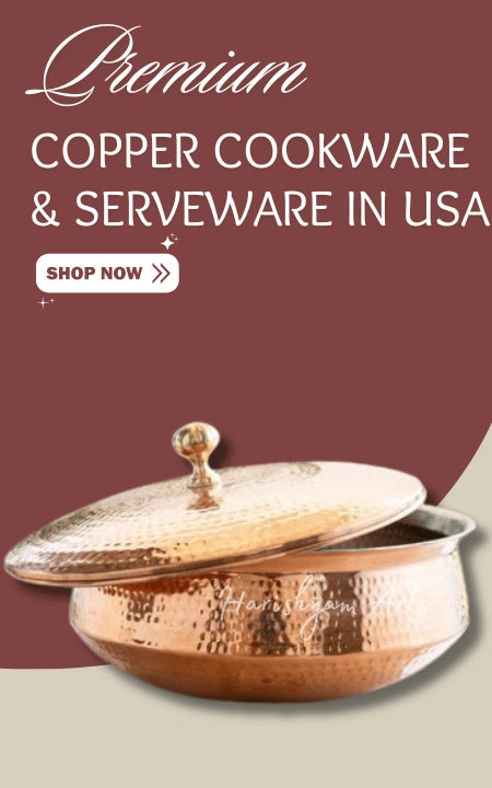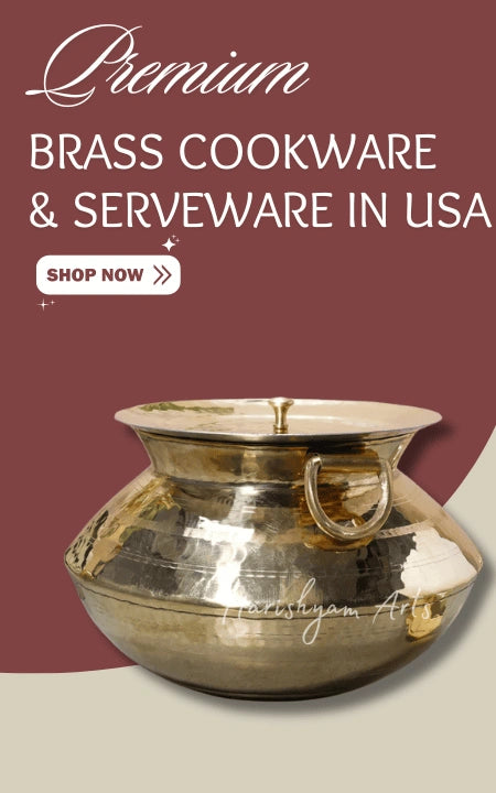 Harishyam Arts brings the essence of Indian craftsmanship to kitchens across the United States with its exclusive collection of traditional metal cookware and serveware. Our finely curated range includes the brass cookware and kitchenware collection, pure Kansa utensils, and antique copper cookware in the USA, all handcrafted by skilled artisans using age-old techniques passed down through generations. Our brass kitchenware is known not only for its durability and beauty but also for its ability to enhance the nutritional value of food. From cooking pots to elegant serveware, each brass item adds a regal touch to your dining experience. The pure Kansa utensils, made from a blend of copper and tin (bronze), are celebrated in Ayurvedic traditions for promoting better digestion and overall wellness—perfect for those who seek a holistic lifestyle in a modern kitchen setting. For lovers of vintage aesthetics and superior heat performance, our antique copper cookware is a must-have. Each piece offers a unique patina and traditional design that stands out, whether you’re preparing daily meals or entertaining guests. Our copper collection includes everything from serving bowls to cooking pans, combining style, substance, and cultural significance.