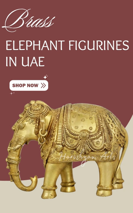 Bring home the brilliance of tradition with our brass elephant figurines, symbolizing strength, wisdom, and good luck. Each brass elephant idol is meticulously crafted with antique polish, making it a stunning piece of Indian craftsmanship in the UAE. Perfect for living rooms, offices, or festive gifting, these figurines combine spiritual charm with a golden glow that enhances any décor theme.