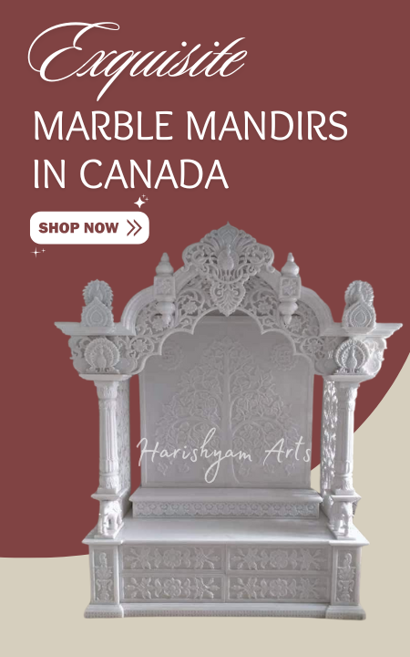 Experience the elegance of a marble temple for home, crafted from high-quality Makrana marble. These temples feature detailed carvings and a pure white finish, creating a serene and sacred space for prayers in Canadian homes.