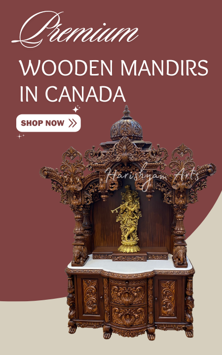 Discover beautifully handcrafted wooden carving temples made from premium teak and Sheesham wood. Designed to bring warmth and tradition, these wooden pooja mandirs showcase intricate carvings, making them a divine addition to homes in Canada.