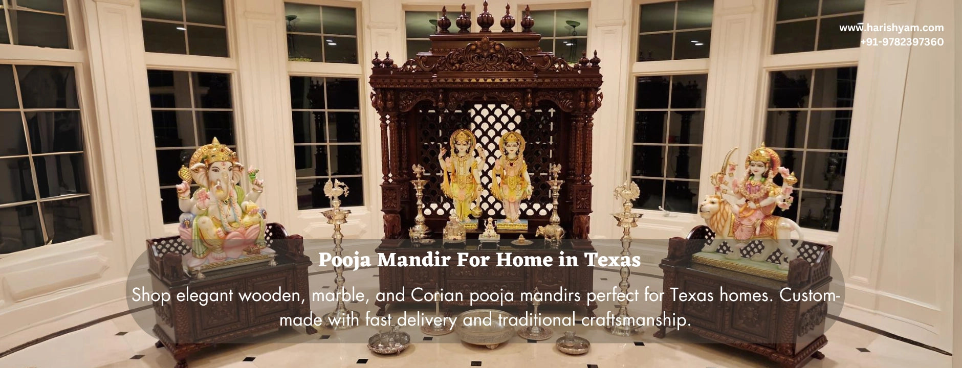 Harishyam Arts is a trusted manufacturer and global exporter of Marble Pooja Mandirs, Wooden Prayer Units, and Modern Backlit Corian Temples, delivering divine artistry to homes across Texas. With years of experience in crafting traditional and contemporary home temples, we specialize in custom-designed pooja mandirs using authentic Makrana marble, seasoned teak wood, and premium Corian materials. Our expert artisans blend timeless Hindu temple design with modern functionality, ensuring each piece reflects devotion, elegance, and long-lasting quality. Whether you’re in Houston, Dallas, Austin, San Antonio, or any other city in Texas, we provide fully personalized marble temples, intricately carved wooden mandirs, and sleek Corian pooja units—with secure packaging and worldwide delivery right to your doorstep.