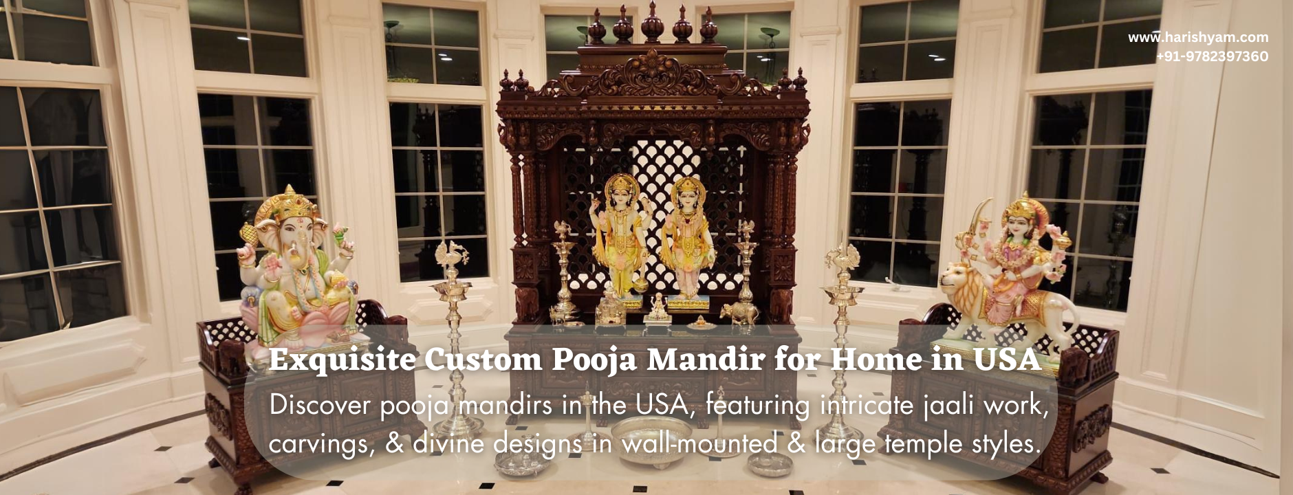 Harishyam Arts is a leading manufacturer and exporter of Indian Pooja Mandirs, specializing in Marble Temples, Wooden Home Altars, and Backlit Corian Mandirs for homes across the USA. With years of expertise, we create custom-designed home temples using premium Makrana marble, high-quality teak wood, and modern Corian materials. Our skilled artisans blend traditional craftsmanship with modern elegance, ensuring each Hindu prayer mandir is a perfect fit for your sacred space. Whether you seek a hand-carved marble mandir, an intricately designed wooden pooja unit, or a contemporary Corian temple, we offer customization and worldwide shipping across the USA, including New York, California, Texas, Florida, and other major states.